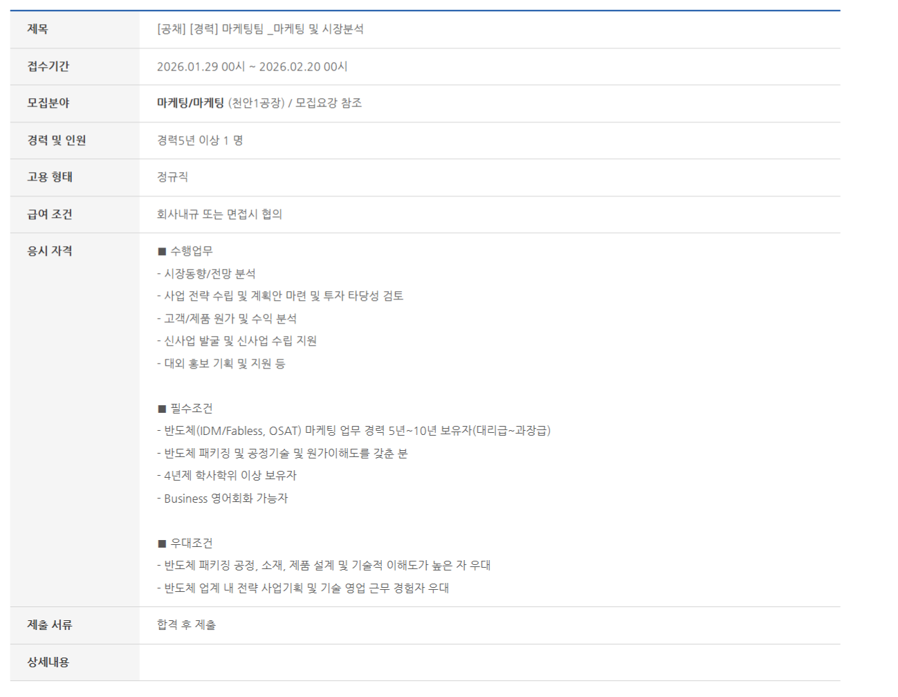 - ¹ÝµµÃ¼(IDM/Fabless, OSAT) ¸¶ÄÉÆÃ ¾÷¹« °æ·Â 5³â~10³â º¸À¯ÀÚ(´ë¸®±Þ~°úÀå±Þ)