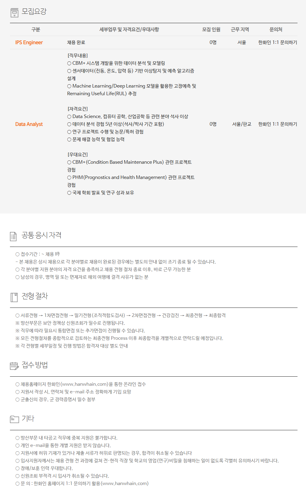 Data Analyst [Á÷¹«³»¿ë] ¡Û CBM+ ½Ã½ºÅÛ °³¹ßÀ» À§ÇÑ µ¥ÀÌÅÍ ºÐ¼® ¹× ¸ðµ¨¸µ ¡Û ¼¾¼­µ¥ÀÌÅÍ(Áøµ¿, ¿Âµµ, ¾Ð·Â µî) ±â¹Ý ÀÌ»óŽÁö ¹× ¿¹Ãø ¾Ë°í¸®Áò ¼³°è ¡Û Machine Learning/Deep Learning ¸ðµ¨À» Ȱ¿ëÇÑ °íÀå¿¹Ãø ¹× Remaining Useful Life(RUL) ÃßÁ¤ [ÀÚ°Ý¿ä°Ç] ¡Û Data Science, ÄÄÇ»ÅÍ °øÇÐ, »ê¾÷°øÇÐ µî °ü·Ã ºÐ¾ß ¼®»ç ÀÌ»ó ¡Û µ¥ÀÌÅÍ ºÐ¼® °æÇè 5³â ÀÌ»ó(¼®»ç/¹Ú»ç ±â°£ Æ÷ÇÔ) ¡Û ¿¬±¸ ÇÁ·ÎÁ§Æ® ¼öÇà ¹× ³í¹®/ƯÇã °æÇè ¡Û ¹®Á¦ ÇØ°á ´É·Â ¹× Çù¾÷ ´É·Â [¿ì´ë¿ä°Ç] ¡Û CBM+(Condition Based Maintenance Plus) °ü·Ã ÇÁ·ÎÁ§Æ® °æÇè ¡Û PHM(Prognostics and Health Management) °ü·Ã ÇÁ·ÎÁ§Æ® °æÇè ¡Û ±¹Á¦ ÇÐȸ ¹ßÇ¥ ¹× ¿¬±¸ ¼º°ú º¸À¯ 0¸í ¼­¿ï/ÆÇ±³ ÇÑÈ­ÀÎ 1:1 ¹®ÀÇÇϱâ