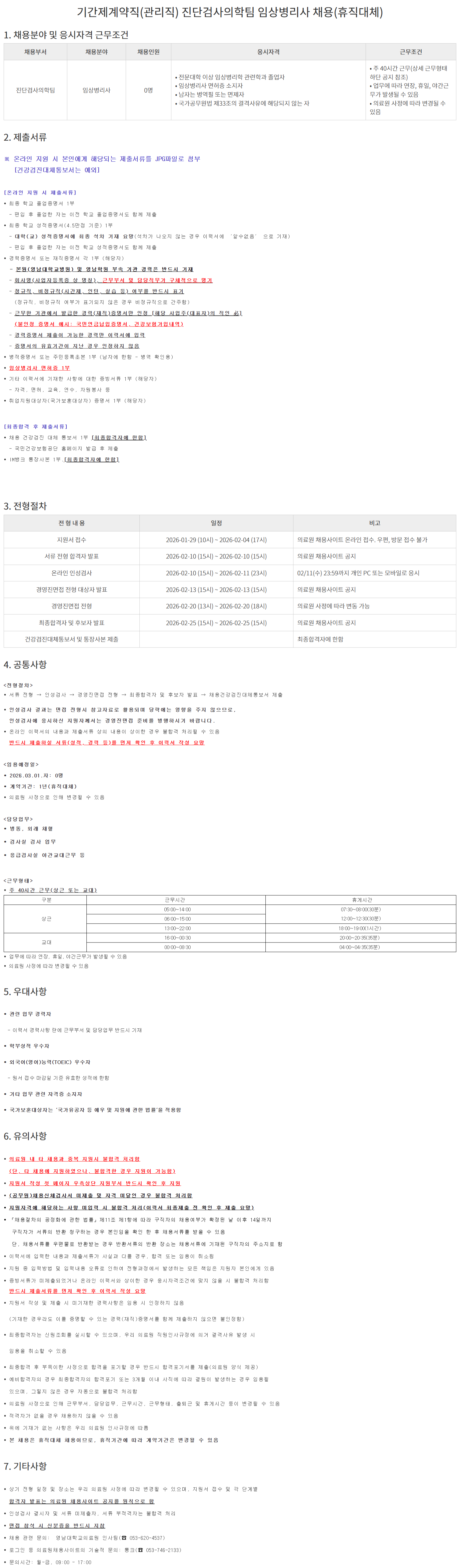 ±â°£Á¦°è¾àÁ÷(°ü¸®Á÷) Áø´Ü°Ë»çÀÇÇÐÆÀ ÀÓ»óº´¸®»ç ä¿ë(ÈÞÁ÷´ëü)