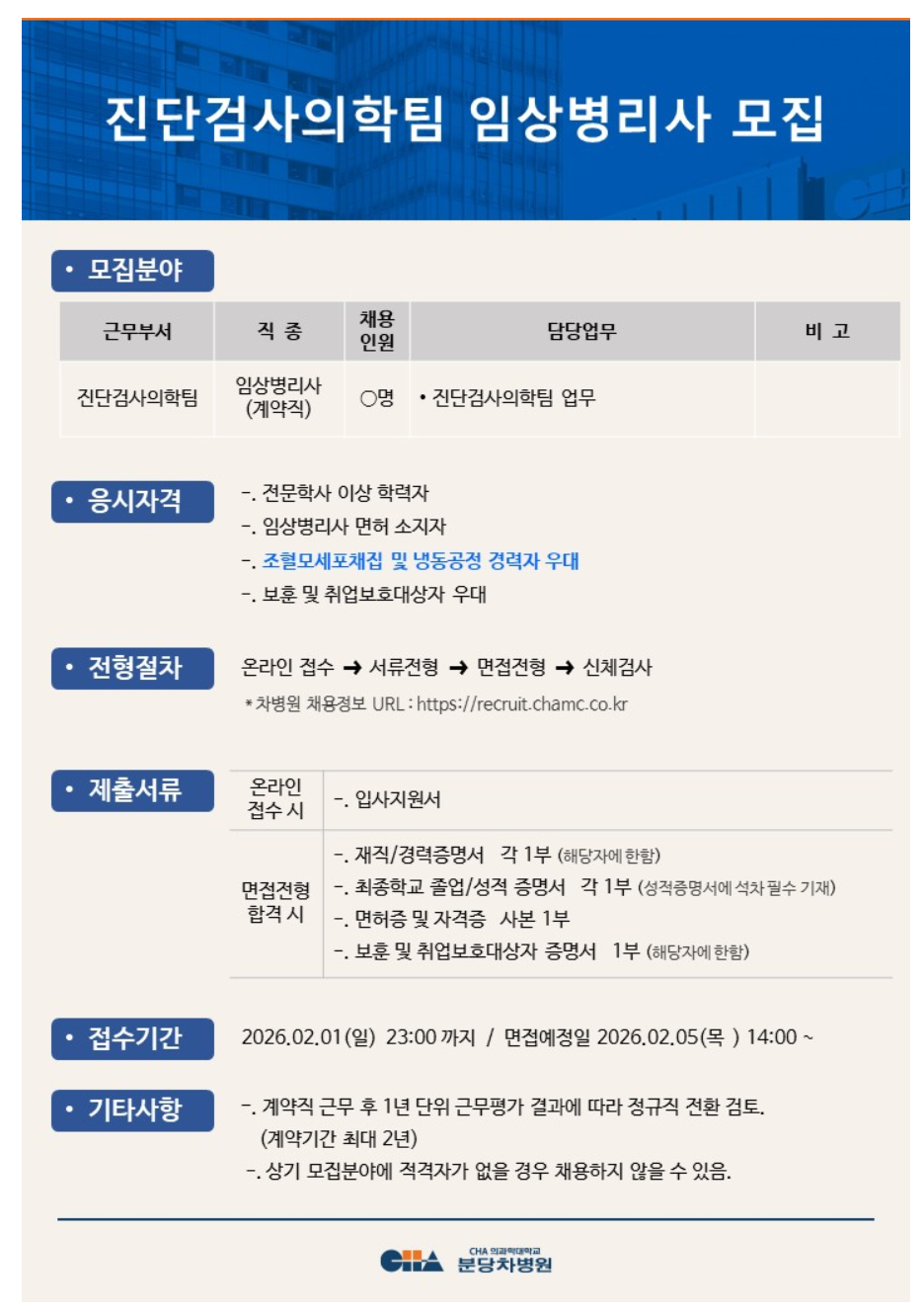 [ºÐ´çÂ÷º´¿ø] Áø´Ü°Ë»çÀÇÇÐÆÀ ÀÓ»óº´¸®»ç ¸ðÁý