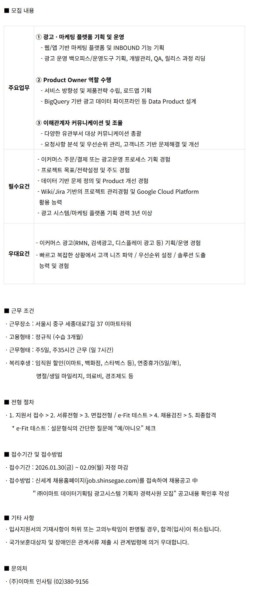 £¢¢ßÀ̸¶Æ® µ¥ÀÌÅͱâȹÆÀ ±¤°í½Ã½ºÅÛ ±âȹÀÚ °æ·Â»ç¿ø ¸ðÁý" °ø°í³»¿ë È®ÀÎÈÄ ÀÛ¼º