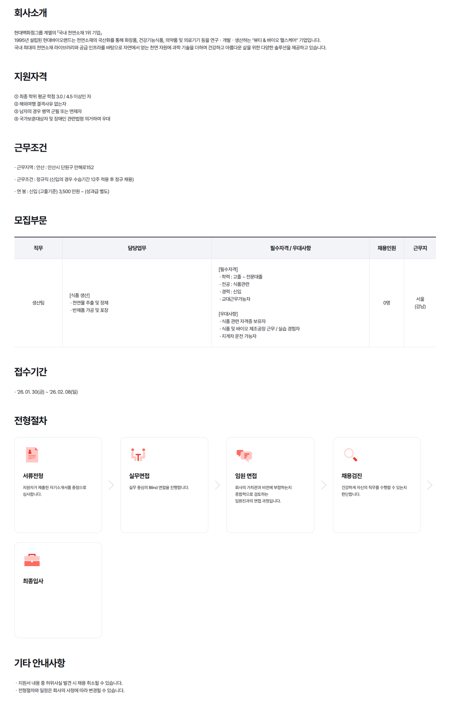 Çö´ë¹ÙÀÌ¿À·£µå ½Äǰ »ý»ê ´ã´çÀÚ Ã¤¿ë