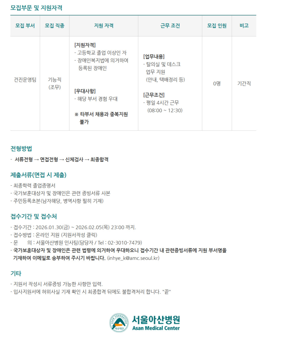 [Àå¾ÖÀÎÆ¯º°ÀüÇü] °ÇÁø¿î¿µÆÀ ±â´ÉÁ÷ Á¶¹«(´Ü½Ã°£) ¸ðÁý