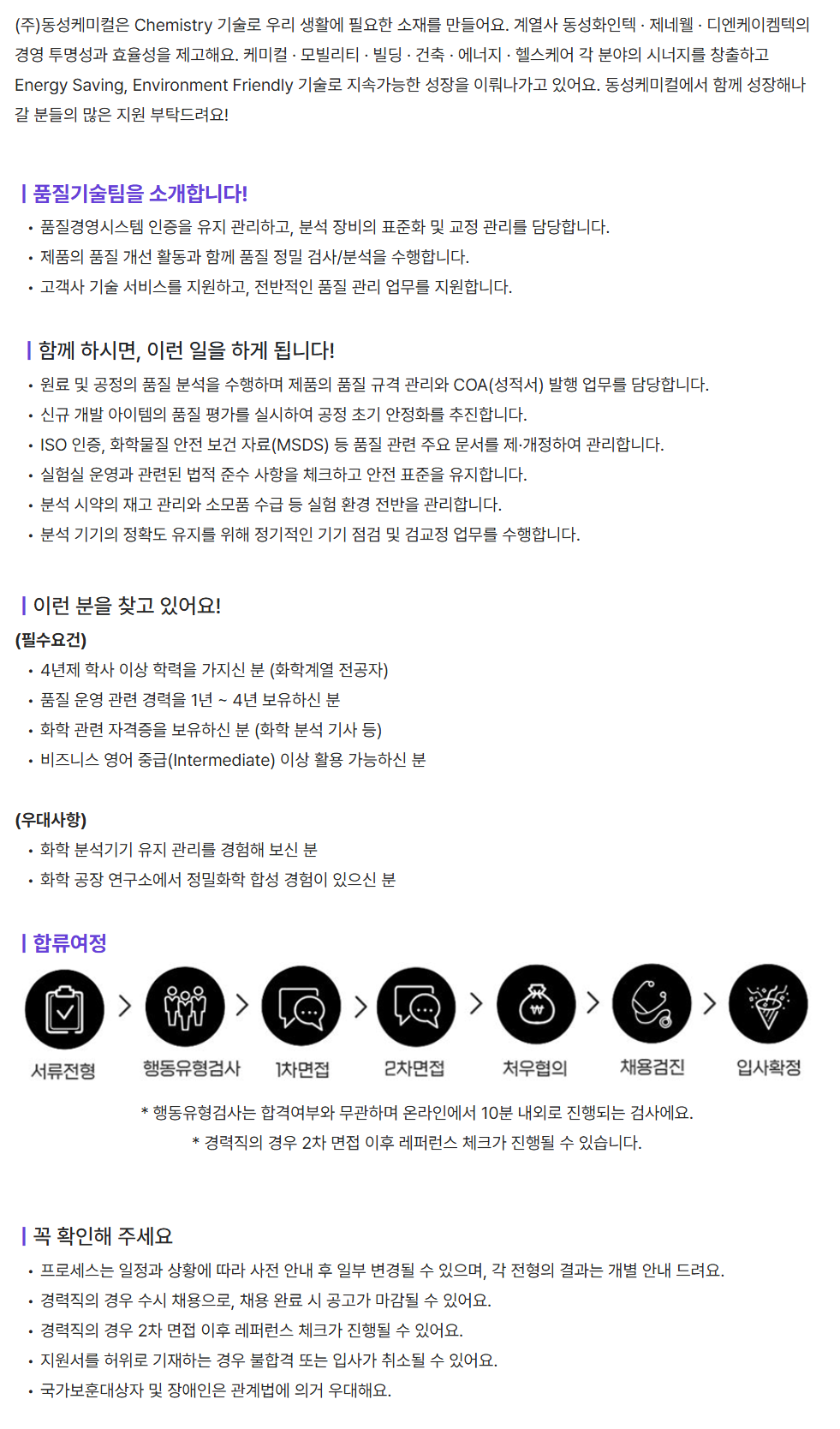 [µ¿¼ºÄɹÌÄÃ] ¿©¼ö ǰÁú±â¼úÆÀ ǰÁú¿î¿µ °æ·Â»ç¿ø ¸ðÁý