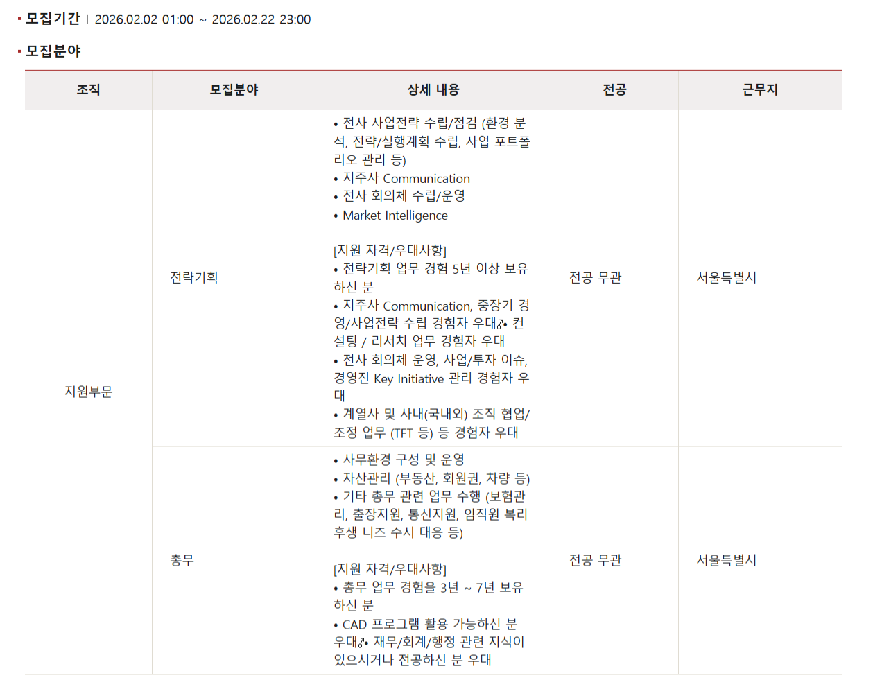 Á¶Á÷ ¸ðÁýºÐ¾ß »ó¼¼ ³»¿ë Àü°ø ±Ù¹«Áö