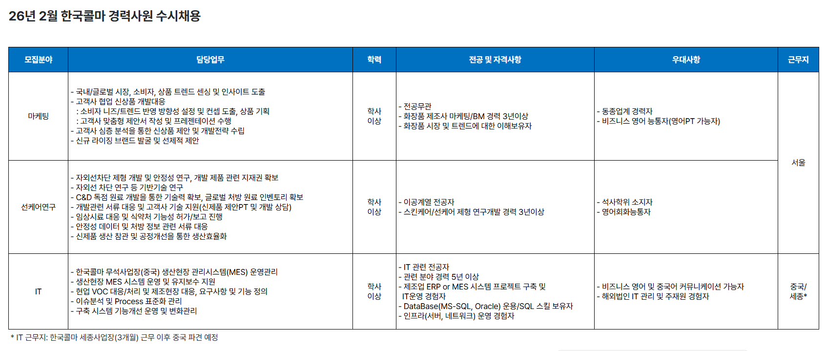 | ¤ý Á¦Ãâ¹æ¹ý : ÀÔ»çÁö¿øÀº Çѱ¹Äݸ¶ ä¿ë ȨÆäÀÌÁö (https://kolmar.recruiter.co.kr) ÅëÇÑ ¿Â¶óÀÎ Á¢¼ö | | | |