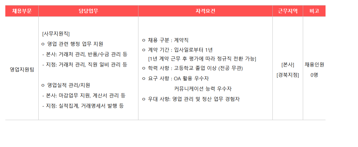 [±¤µ¿Á¦¾à] ¿µ¾÷Áö¿øÆÀ »ç¹«Áö¿øÁ÷¿ø ¸ðÁý(°úõº»»ç, °æºÏÁöÁ¡)
