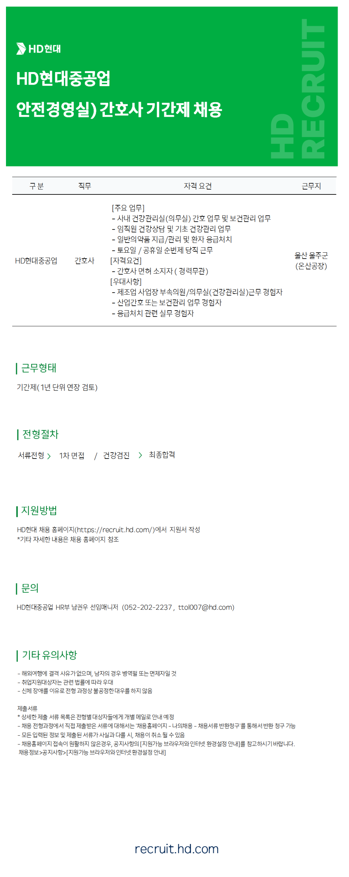 [HDÇö´ëÁß°ø¾÷]¾ÈÀü°æ¿µ½Ç °£È£»ç ±â°£Á¦ ä¿ë