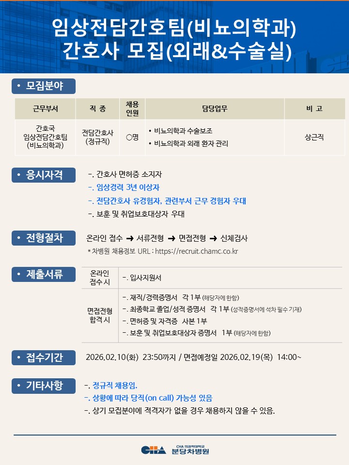 [ºÐ´çÂ÷º´¿ø] ÀÓ»óÀü´ã°£È£ÆÀ(ºñ´¢ÀÇÇаú) °£È£»ç ¸ðÁý(¿Ü·¡&¼ö¼ú½Ç)