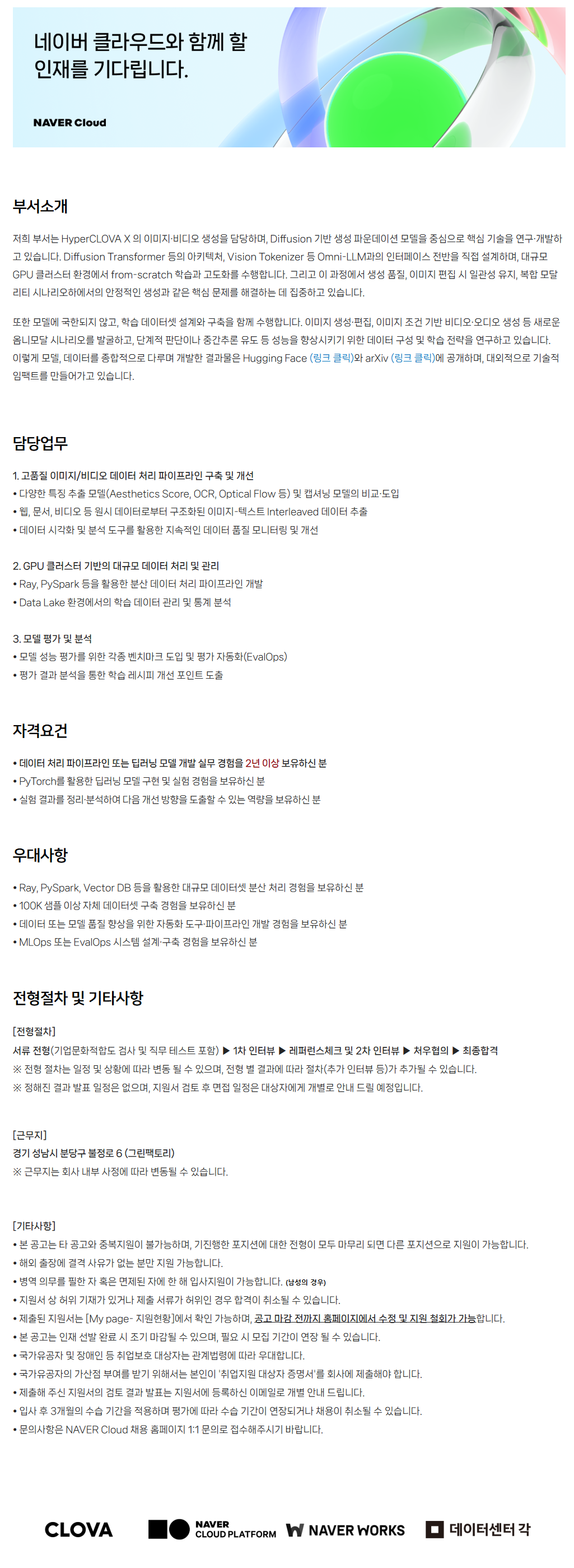 ÀúÈñ ºÎ¼´Â HyperCLOVA X ÀÇ À̹ÌÁö¡¤ºñµð¿À »ý¼ºÀ» ´ã´çÇϸç, Diffusion ±â¹Ý »ý¼º ÆÄ¿îµ¥ÀÌ¼Ç ¸ðµ¨À» Áß½ÉÀ¸·Î ÇÙ½É ±â¼úÀ» ¿¬±¸¡¤°³¹ßÇϰí ÀÖ½À´Ï´Ù. Diffusion Transformer µîÀÇ ¾ÆÅ°ÅØÃ³, Vision Tokenizer µî Omni-LLM°úÀÇ ÀÎÅÍÆäÀ̽º Àü¹ÝÀ» Á÷Á¢ ¼³°èÇϸç, ´ë±Ô¸ð GPU Ŭ·¯½ºÅÍ È¯°æ¿¡¼ from-scratch ÇнÀ°ú °íµµÈ¸¦ ¼öÇàÇÕ´Ï´Ù. ±×¸®°í ÀÌ °úÁ¤¿¡¼ »ý¼º ǰÁú, À̹ÌÁö ÆíÁý ½Ã Àϰü¼º À¯Áö, º¹ÇÕ ¸ð´Þ¸®Æ¼ ½Ã³ª¸®¿ÀÇÏ¿¡¼ÀÇ ¾ÈÁ¤ÀûÀÎ »ý¼º°ú °°Àº ÇÙ½É ¹®Á¦¸¦ ÇØ°áÇÏ´Â µ¥ ÁýÁßÇϰí ÀÖ½À´Ï´Ù.