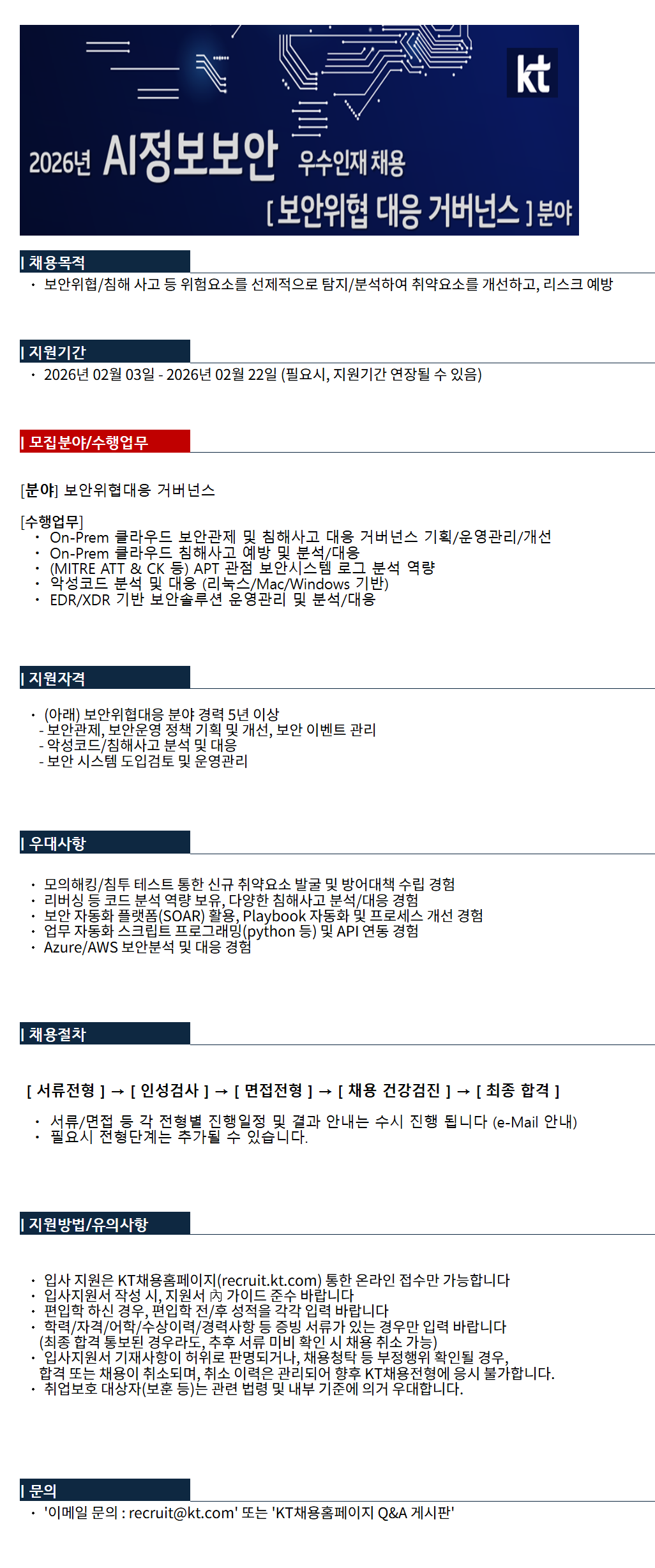 2026³â KT Á¤º¸º¸¾È ¿ì¼öÀÎÀç ä¿ë