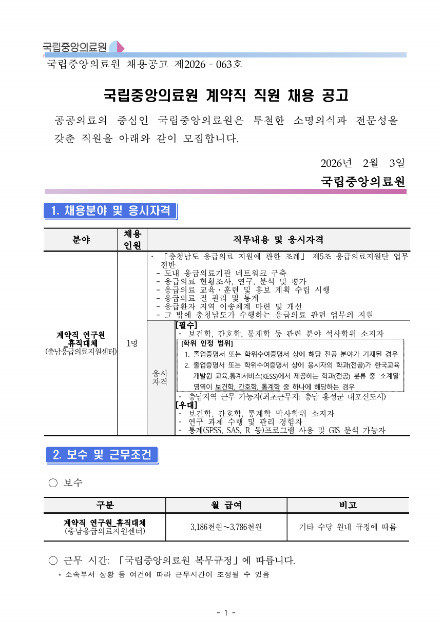 ±¹¸³Áß¾ÓÀÇ·á¿ø ä¿ë°ø°í Á¦2026–063È£
