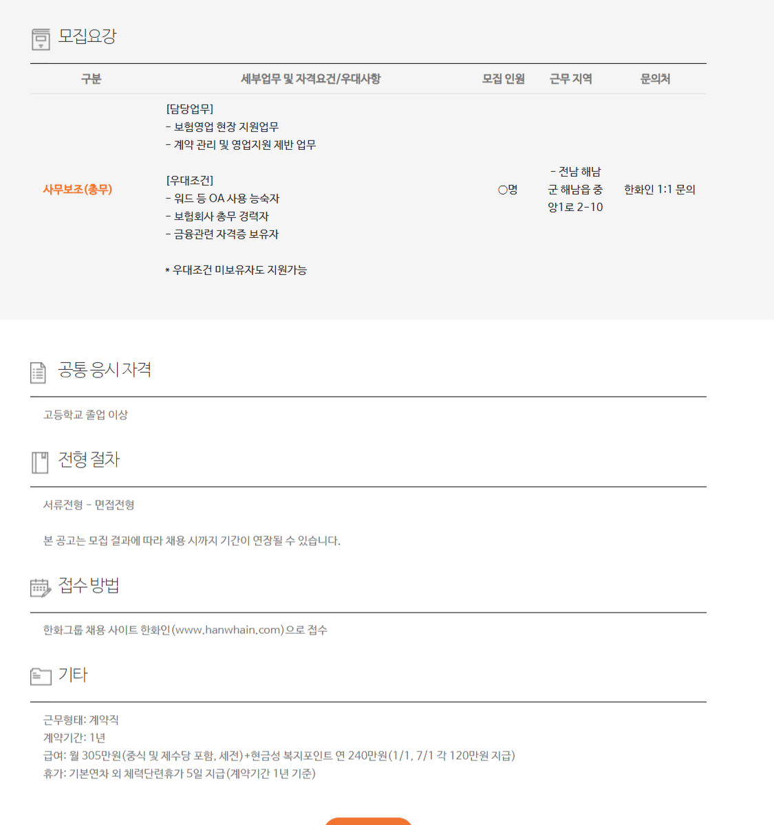 ÇÑȼÕÇØº¸Çè(ÁÖ) °è¾àÁ÷ ä¿ë - Àü¼Ó¿µ¾÷ºÎ¹® ä¿ë(ÇØ³²)