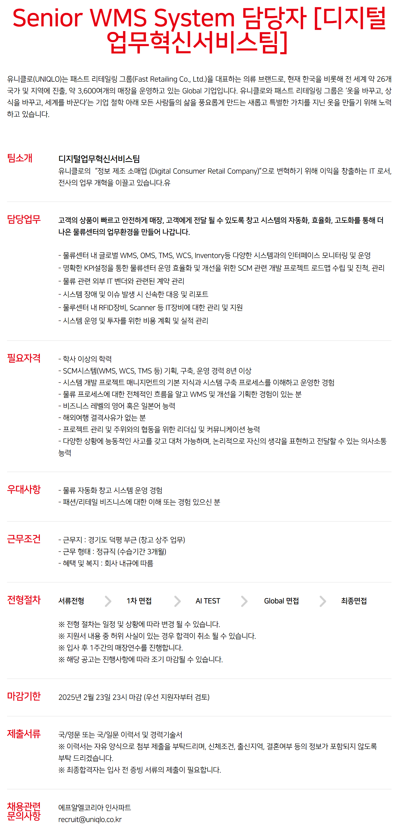 Senior WMS System ´ã´çÀÚ [µðÁöÅо÷¹«Çõ½Å¼ºñ½ºÆÀ]