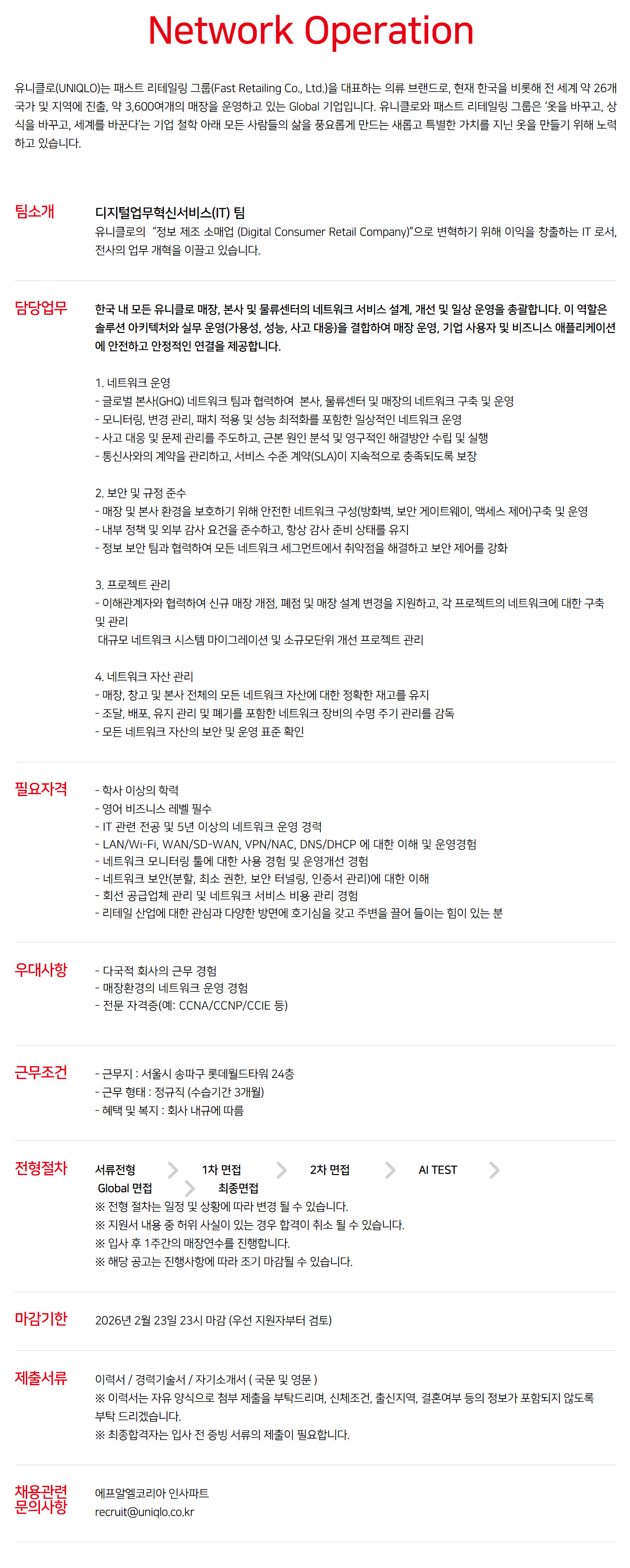 Çѱ¹ ³» ¸ðµç À¯´ÏŬ·Î ¸ÅÀå, º»»ç ¹× ¹°·ù¼¾ÅÍÀÇ ³×Æ®¿öÅ© ¼ºñ½º ¼³°è, °³¼± ¹× ÀÏ»ó ¿î¿µÀ» ÃѰýÇÕ´Ï´Ù. ÀÌ ¿ªÇÒÀº ¼Ö·ç¼Ç ¾ÆÅ°ÅØÃ³¿Í ½Ç¹« ¿î¿µ(°¡¿ë¼º, ¼º´É, »ç°í ´ëÀÀ)À» °áÇÕÇÏ¿© ¸ÅÀå ¿î¿µ, ±â¾÷ »ç¿ëÀÚ ¹× ºñÁî´Ï½º ¾ÖÇø®ÄÉÀ̼ǿ¡ ¾ÈÀüÇÏ°í ¾ÈÁ¤ÀûÀÎ ¿¬°áÀ» Á¦°øÇÕ´Ï´Ù.