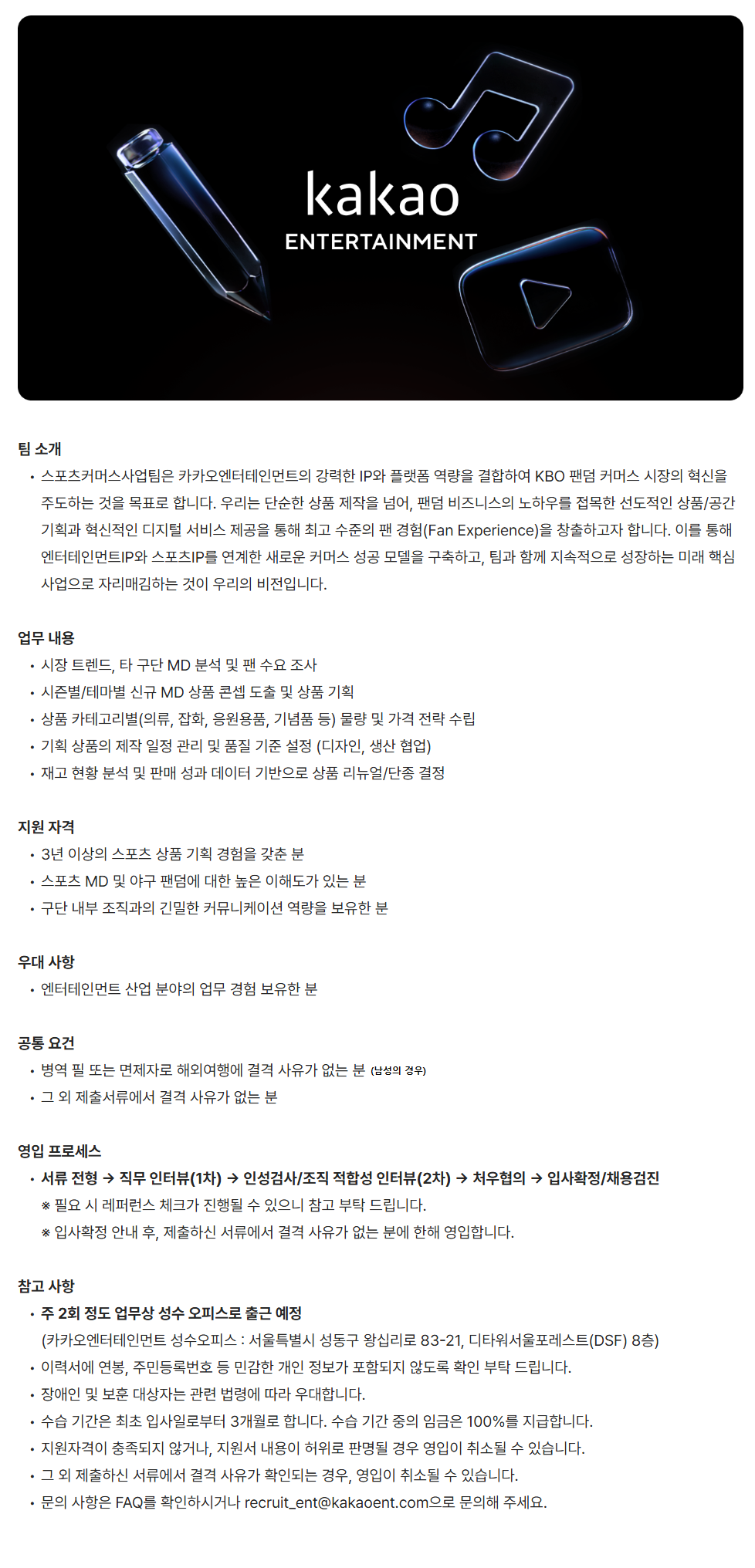 ½ºÆ÷Ã÷Ä¿¸Ó½º»ç¾÷ÆÀÀº īī¿À¿£ÅÍÅ×ÀÎ¸ÕÆ®ÀÇ °·ÂÇÑ IP¿Í Ç÷§Æû ¿ª·®À» °áÇÕÇÏ¿© KBO ÆÒ´ý Ä¿¸Ó½º ½ÃÀåÀÇ Çõ½ÅÀ» ÁÖµµÇÏ´Â °ÍÀ» ¸ñÇ¥·Î ÇÕ´Ï´Ù. ¿ì¸®´Â ´Ü¼øÇÑ »óǰ Á¦ÀÛÀ» ³Ñ¾î, ÆÒ´ý ºñÁî´Ï½ºÀÇ ³ëÇϿ츦 Á¢¸ñÇÑ ¼±µµÀûÀÎ »óǰ/°ø°£ ±âȹ°ú Çõ½ÅÀûÀÎ µðÁöÅÐ ¼ºñ½º Á¦°øÀ» ÅëÇØ ÃÖ°í ¼öÁØÀÇ ÆÒ °æÇè(Fan Experience)À» âÃâÇϰíÀÚ ÇÕ´Ï´Ù. À̸¦ ÅëÇØ ¿£ÅÍÅ×ÀÎ¸ÕÆ®IP¿Í ½ºÆ÷Ã÷IP¸¦ ¿¬°èÇÑ »õ·Î¿î Ä¿¸Ó½º ¼º°ø ¸ðµ¨À» ±¸ÃàÇϰí, ÆÀ°ú ÇÔ²² Áö¼ÓÀûÀ¸·Î ¼ºÀåÇÏ´Â ¹Ì·¡ ÇÙ½É »ç¾÷À¸·Î ÀÚ¸®¸Å±èÇÏ´Â °ÍÀÌ ¿ì¸®ÀÇ ºñÀüÀÔ´Ï´Ù.
