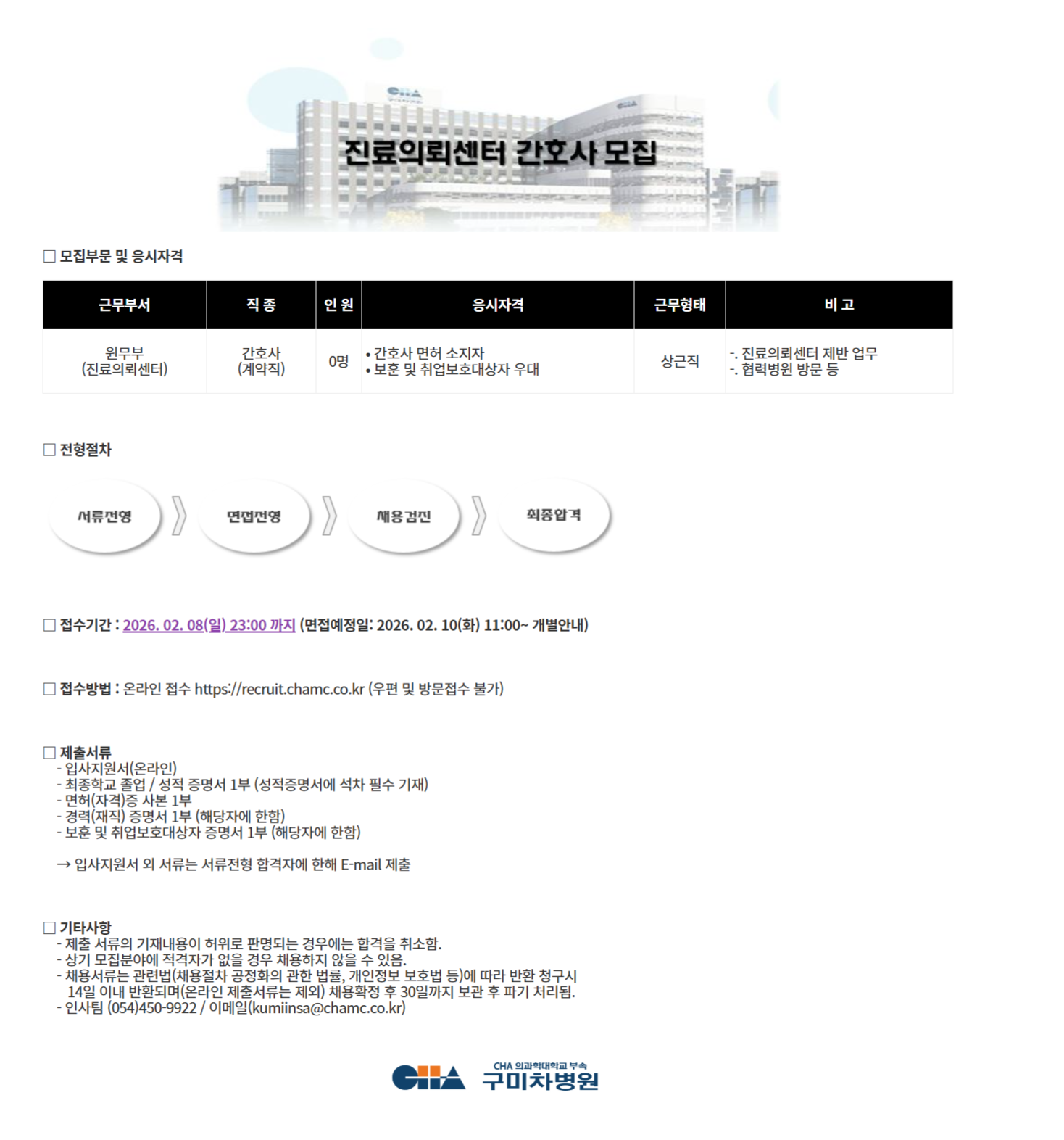 ±Ù¹«ºÎ¼ Á÷ Á¾ ÀÎ ¿ø ÀÀ½ÃÀÚ°Ý ±Ù¹«ÇüÅ ºñ °í ¿ø¹«ºÎ (Áø·áÀÇ·Ú¼¾ÅÍ) °£È£»ç (°è¾àÁ÷) 0¸í • °£È£»ç ¸éÇã ¼ÒÁöÀÚ • º¸ÈÆ ¹× Ãë¾÷º¸È£´ë»óÀÚ ¿ì´ë »ó±ÙÁ÷ -. Áø·áÀÇ·Ú¼¾ÅÍ Á¦¹Ý ¾÷¹« -. Çù·Âº´¿ø ¹æ¹® µî