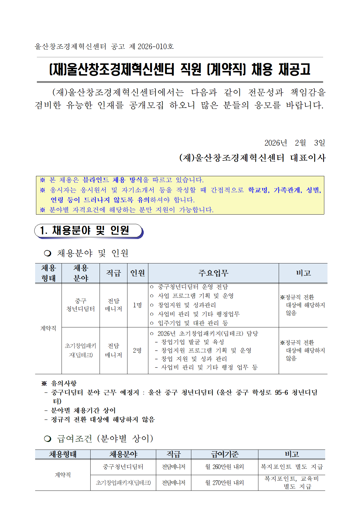 (Àç)¿ï»êâÁ¶°æÁ¦Çõ½Å¼¾ÅÍ Á÷¿ø (°è¾àÁ÷) ä¿ë Àç°ø°í