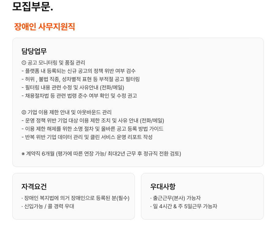 Àå¾ÖÀÎ »ç¹«Áö¿øÁ÷ ä¿ë (Á¤±ÔÁ÷ Àüȯ°¡´É)