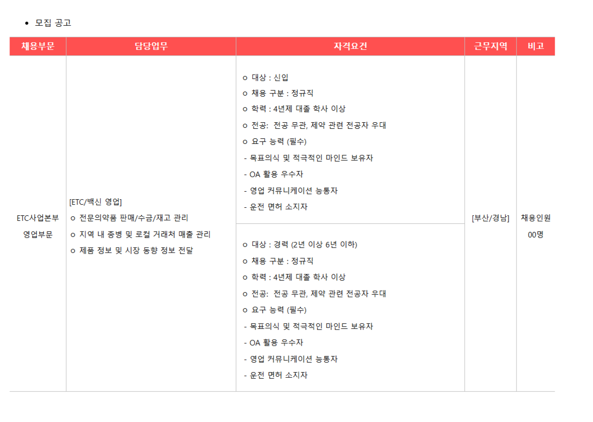 [±¤µ¿Á¦¾à] ETC¿µ¾÷ºÎ¹® ºÎ»ê/°æ³² ¿µ¾÷»ç¿ø(MR) ½ÅÀÔ ¹× °æ·ÂÁ÷¿ø ¸ðÁý