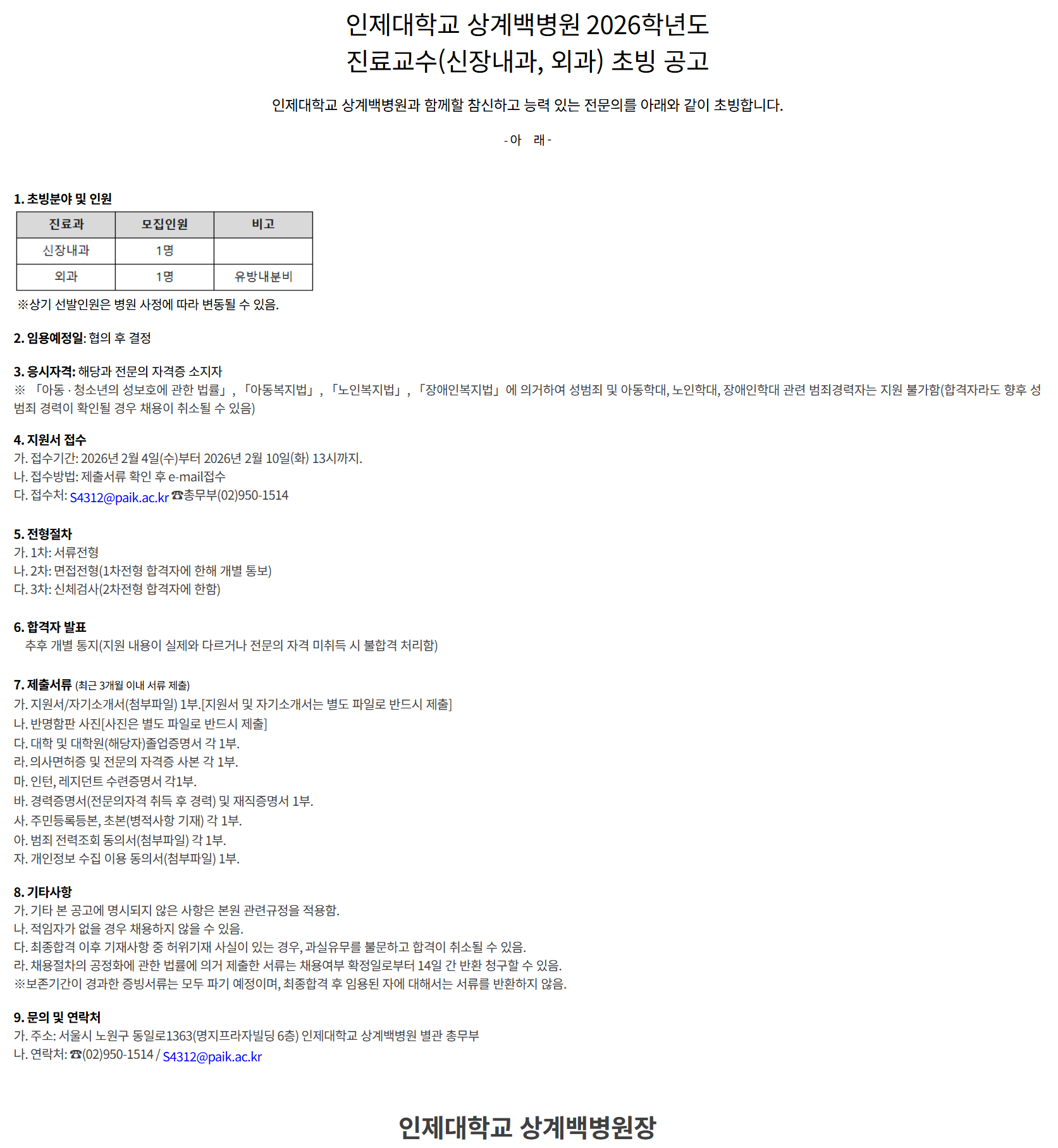 1686. [»ó°è¹éº´¿ø] 2026Çг⵵ ½ÅÀå³»°ú, ¿Ü°ú Áø·á±³¼ö Ãʺù °ø°í