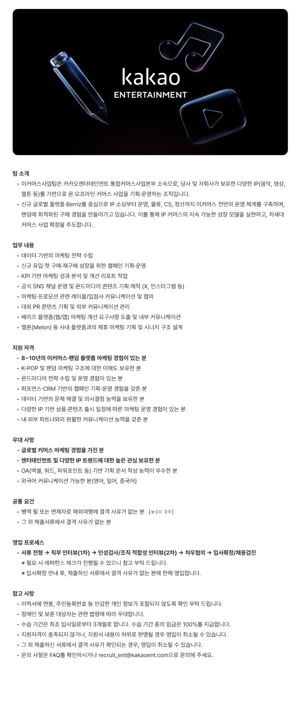 ÀÌÄ¿¸Ó½º»ç¾÷ÆÀÀº īī¿À¿£ÅÍÅ×ÀÎ¸ÕÆ® ÅëÇÕÄ¿¸Ó½º»ç¾÷º»ºÎ ¼Ò¼ÓÀ¸·Î, ´ç»ç ¹× ÀÚȸ»ç°¡ º¸À¯ÇÑ ´Ù¾çÇÑ IP(À½¾Ç, ¿µ»ó, À¥Å÷ µî)¸¦ ±â¹ÝÀ¸·Î ¿Â¡¤¿ÀÇÁ¶óÀÎ Ä¿¸Ó½º »ç¾÷À» ±âȹ¡¤¿î¿µÇÏ´Â Á¶Á÷ÀÔ´Ï´Ù.