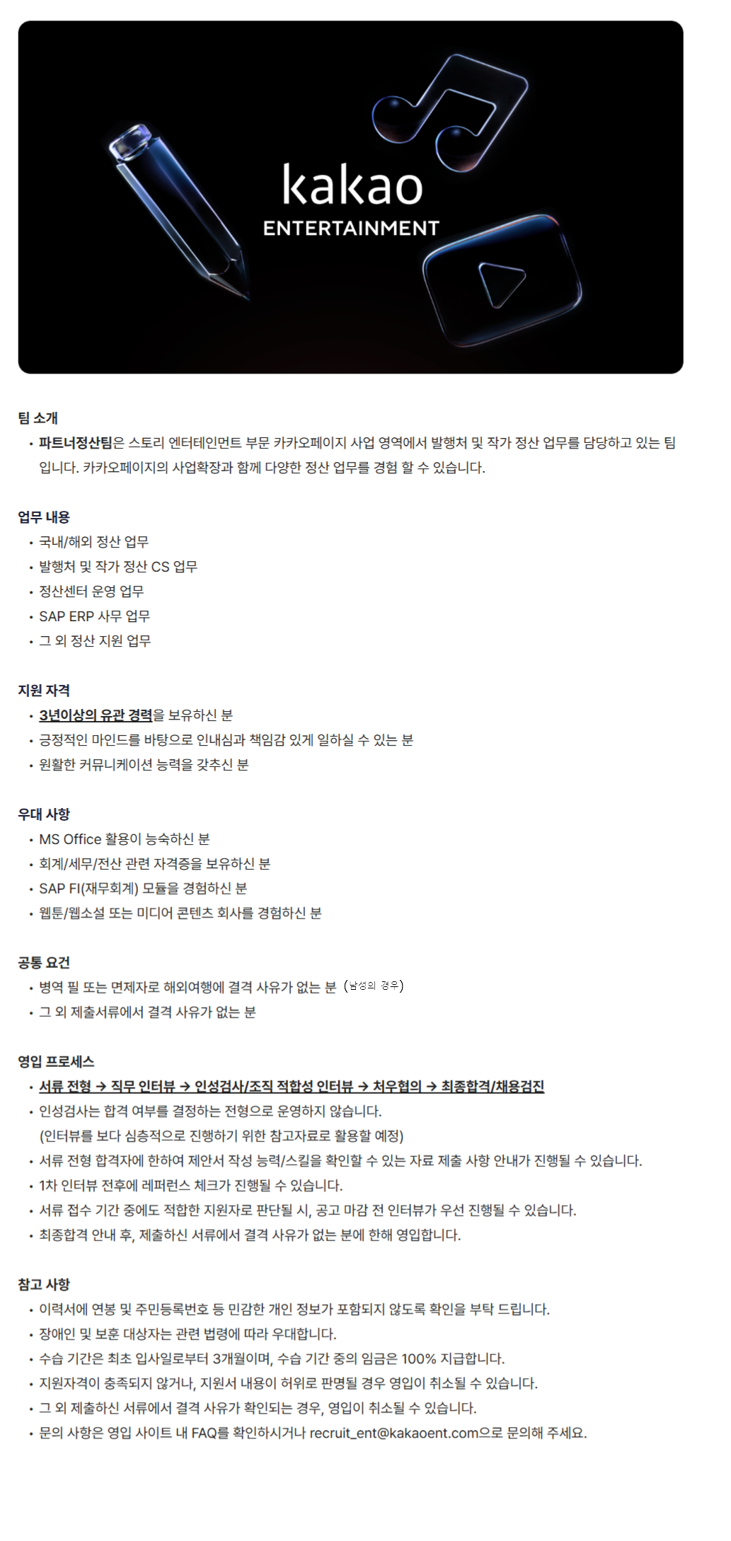 ÆÄÆ®³ÊÁ¤»êÆÀÀº ½ºÅ丮 ¿£ÅÍÅ×ÀÎ¸ÕÆ® ºÎ¹® īī¿ÀÆäÀÌÁö »ç¾÷ ¿µ¿ª¿¡¼ ¹ßÇàó ¹× ÀÛ°¡ Á¤»ê ¾÷¹«¸¦ ´ã´çÇϰí ÀÖ´Â ÆÀÀÔ´Ï´Ù. īī¿ÀÆäÀÌÁöÀÇ »ç¾÷È®Àå°ú ÇÔ²² ´Ù¾çÇÑ Á¤»ê ¾÷¹«¸¦ °æÇè ÇÒ ¼ö ÀÖ½À´Ï´Ù.