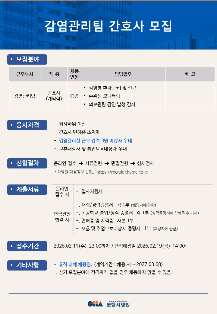 [ºÐ´çÂ÷º´¿ø] °¨¿°°ü¸®ÆÀ °£È£»ç ¸ðÁý