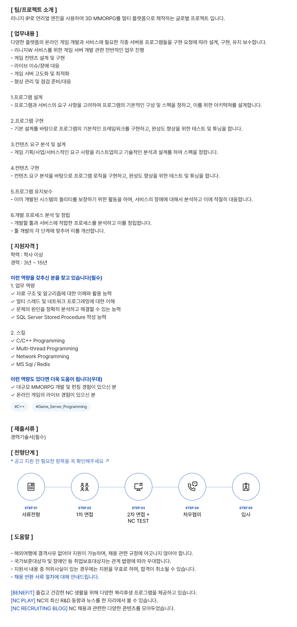 - ¸®´ÏÁöW ¼ºñ½º¸¦ À§ÇÑ °ÔÀÓ ¼¹ö °³¹ß °ü·Ã Àü¹ÝÀûÀÎ ¾÷¹« ÁøÇà