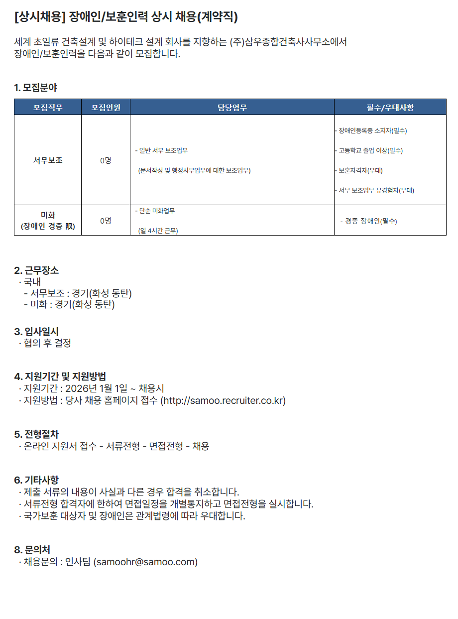 Àå¾ÖÀÎ/º¸ÈÆÀηÂÀ» ´ÙÀ½°ú °°ÀÌ ¸ðÁýÇÕ´Ï´Ù.