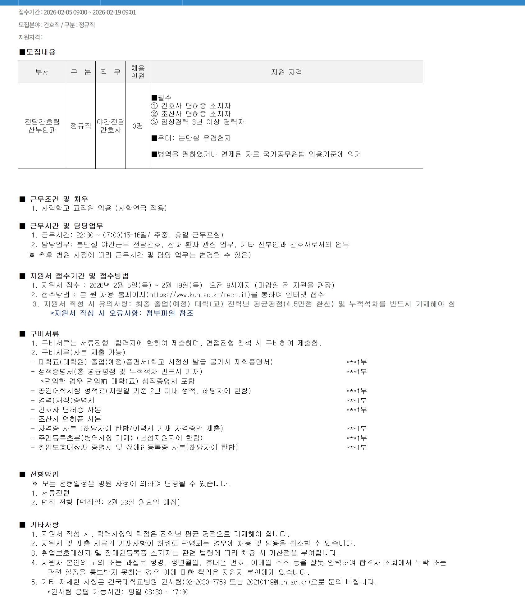 [Á¤±ÔÁ÷] 2026³âµµ Á¶»ê»ç º¸À¯ ¾ß°£Àü´ã °£È£»ç ä¿ë