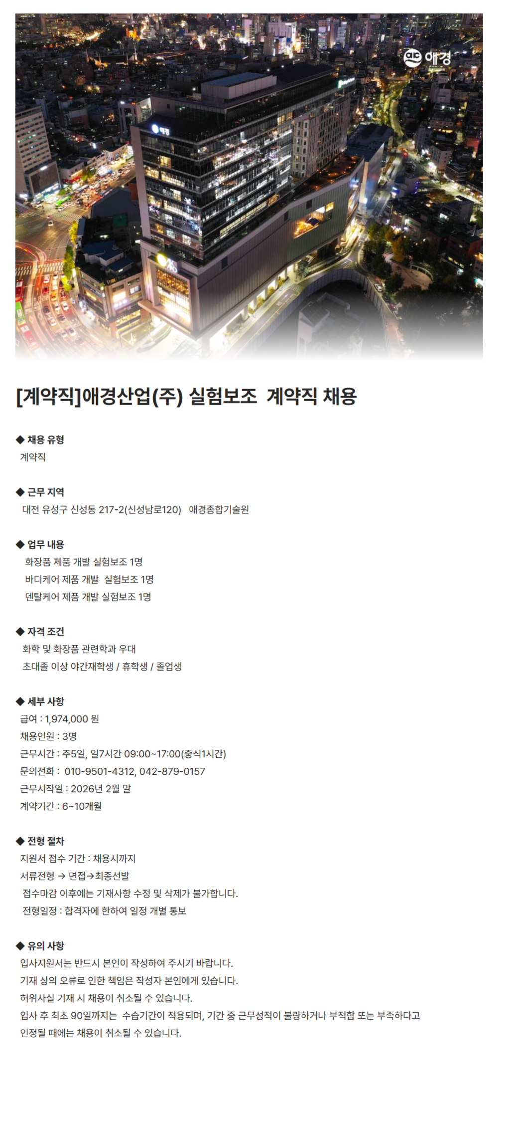 ¾Ö°æ»ê¾÷(ÁÖ) ´ëÀü¿¬±¸¼Ò ½ÇÇ躸Á¶ °è¾àÁ÷ ä¿ë