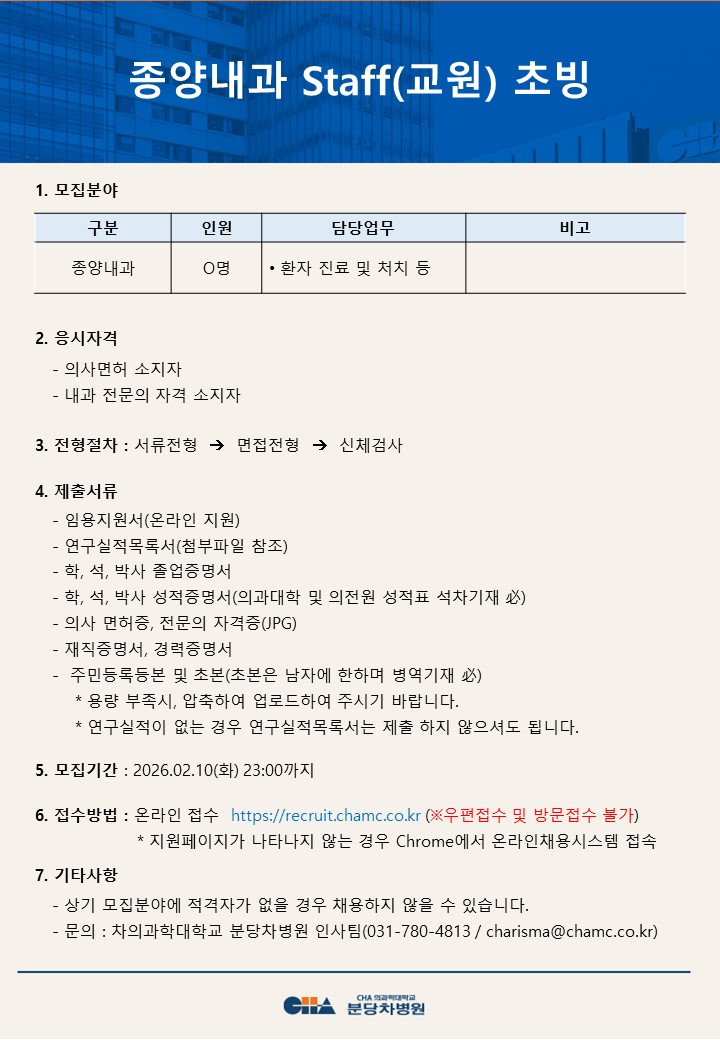 [°øÃ¤(±³¿ø)] [ºÐ´çÂ÷º´¿ø] Á¾¾ç³»°ú Staff(±³¿ø) Ãʺù