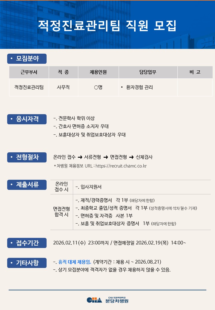 [ºÐ´çÂ÷º´¿ø] ÀûÁ¤Áø·á°ü¸®ÆÀ Á÷¿ø ¸ðÁý