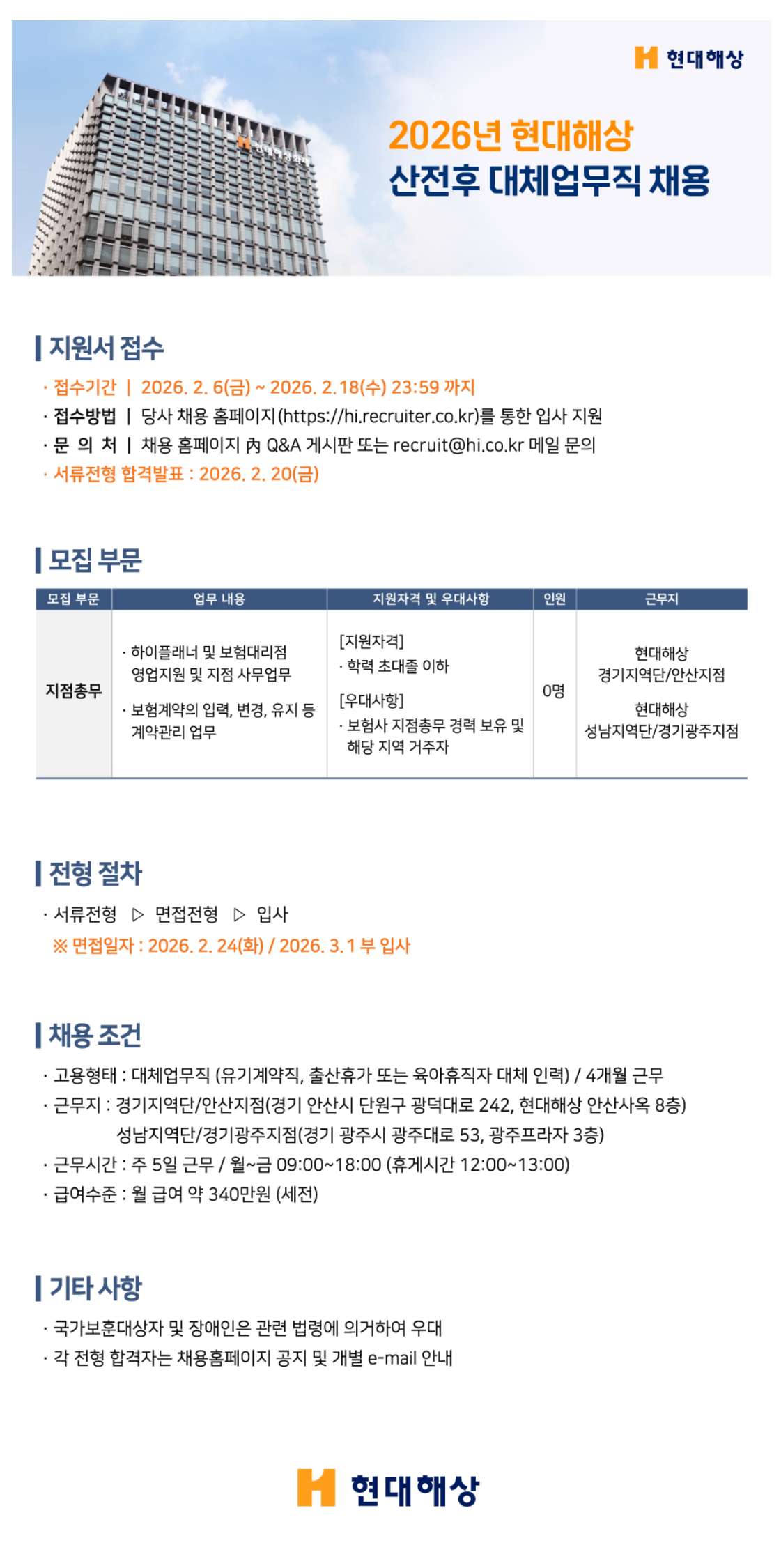 2026 Çö´ëÇØ»ó ´ëü¾÷¹«Á÷ ä¿ë - ¾È»ê/°æ±â±¤ÁÖ