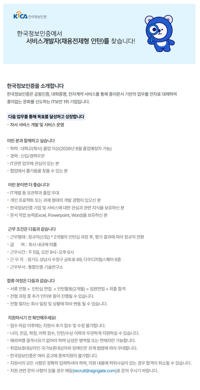 ±Ù¹«ÇüÅ : Á¤±ÔÁ÷(½ÅÀÔ) * 2°³¿ùÀÇ ÀÎÅÏ½Ê °úÁ¤ ÈÄ, Æò°¡ °á°ú¿¡ µû¶ó Á¤±ÔÁ÷ Àüȯ