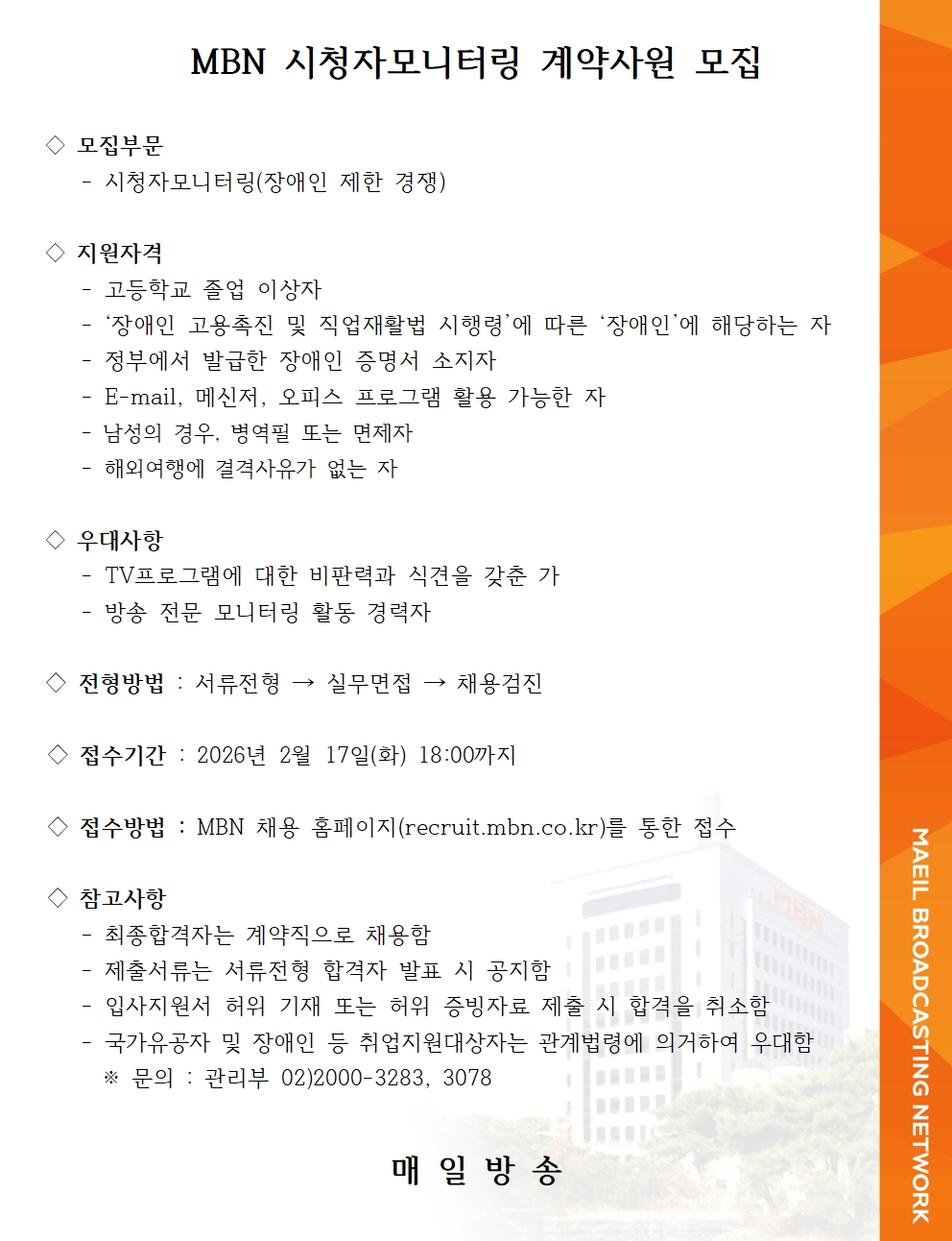 MBN ½ÃûÀÚ¸ð´ÏÅ͸µ °è¾à»ç¿ø ¸ðÁý