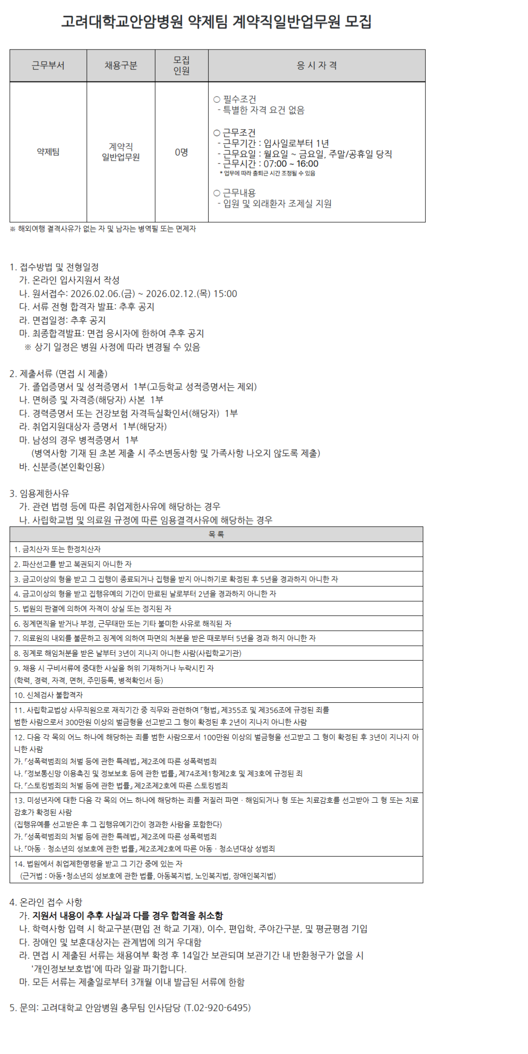 [¾È¾Ïº´¿ø 25-275]¾àÁ¦ÆÀ °è¾àÁ÷ ÀϹݾ÷¹«¿ø ¸ðÁý