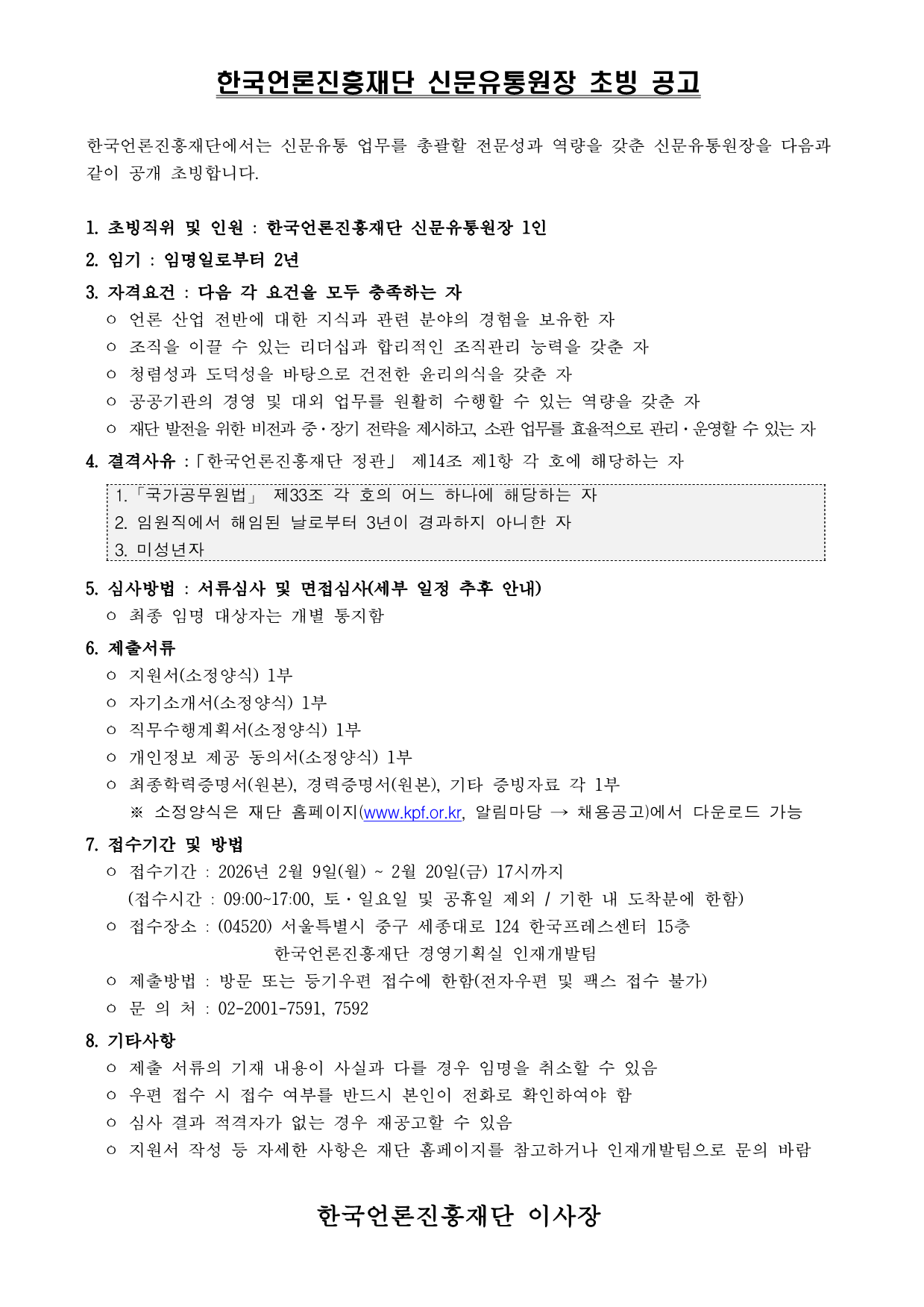 Çѱ¹¾ð·ÐÁøÈïÀç´Ü¿¡¼´Â ½Å¹®À¯Åë ¾÷¹«¸¦ ÃѰýÇÒ Àü¹®¼º°ú ¿ª·®À» °®Ãá ½Å¹®À¯Åë¿øÀåÀ» ´ÙÀ½°ú
