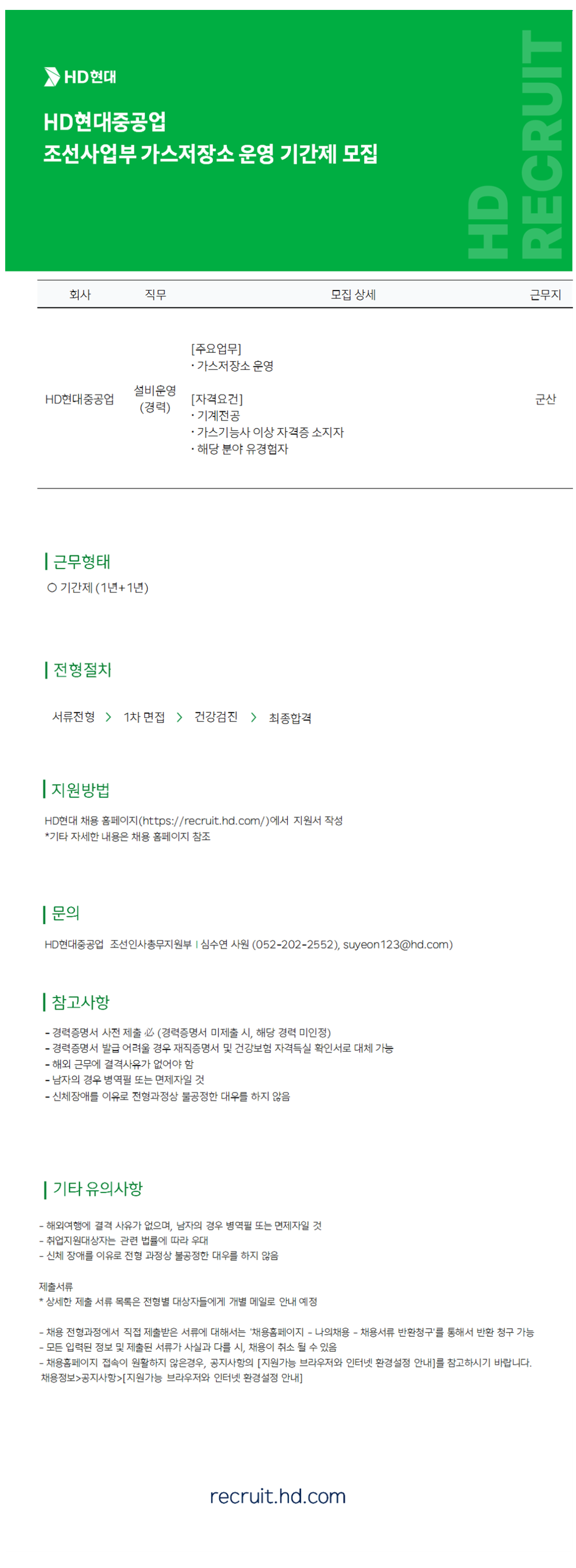 [HDÇö´ëÁß°ø¾÷] Á¶¼±»ç¾÷ºÎ °¡½ºÀúÀå¼Ò ¿î¿µ ±â°£Á¦ ¸ðÁý