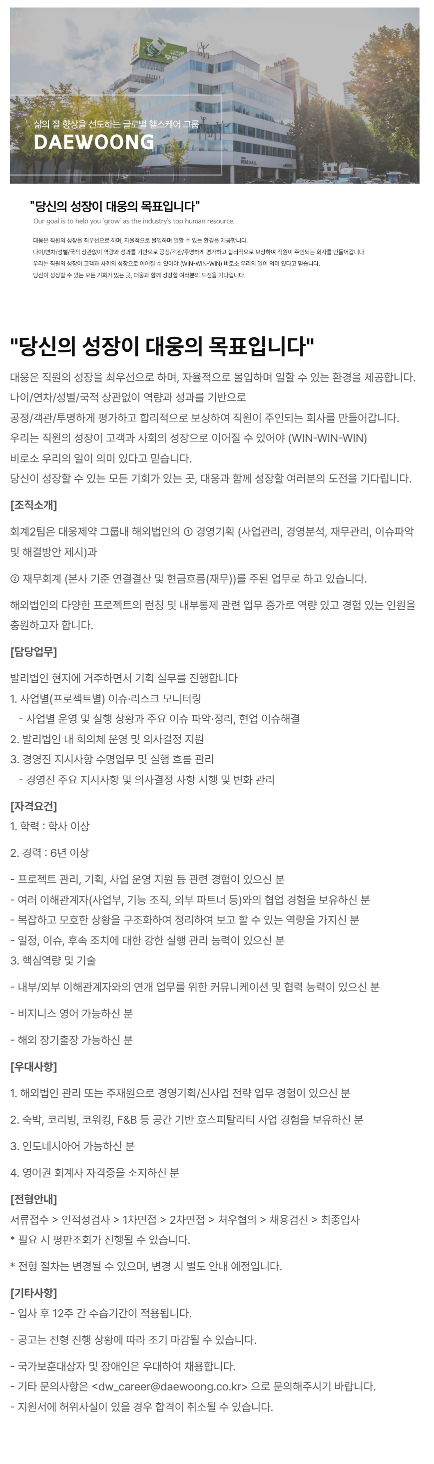 - ±âŸ ¹®ÀÇ»çÇ×Àº <dw_career@daewoong.co.kr******@*******.***> À¸·Î ¹®ÀÇÇØÁֽñ⠹ٶø´Ï´Ù.