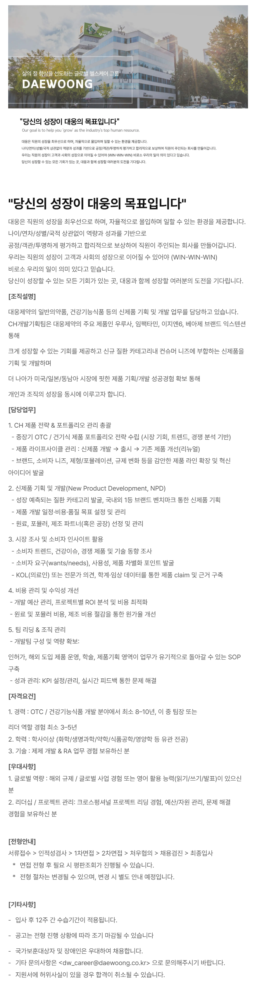 -⠀±âŸ ¹®ÀÇ»çÇ×Àº <dw_career@daewoong.co.kr******@*******.***> À¸·Î ¹®ÀÇÇØÁֽñ⠹ٶø´Ï´Ù.