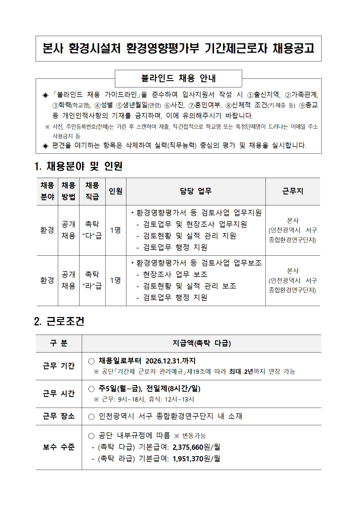 Çѱ¹È¯°æ°ø´Ü ȯ°æ½Ã¼³º»ºÎ ȯ°æ½Ã¼³Ã³ ȯ°æ¿µÇâÆò°¡ºÎ ÃËŹÁ÷(´Ù±Þ, ¶ó±Þ) ä¿ë °ø°í