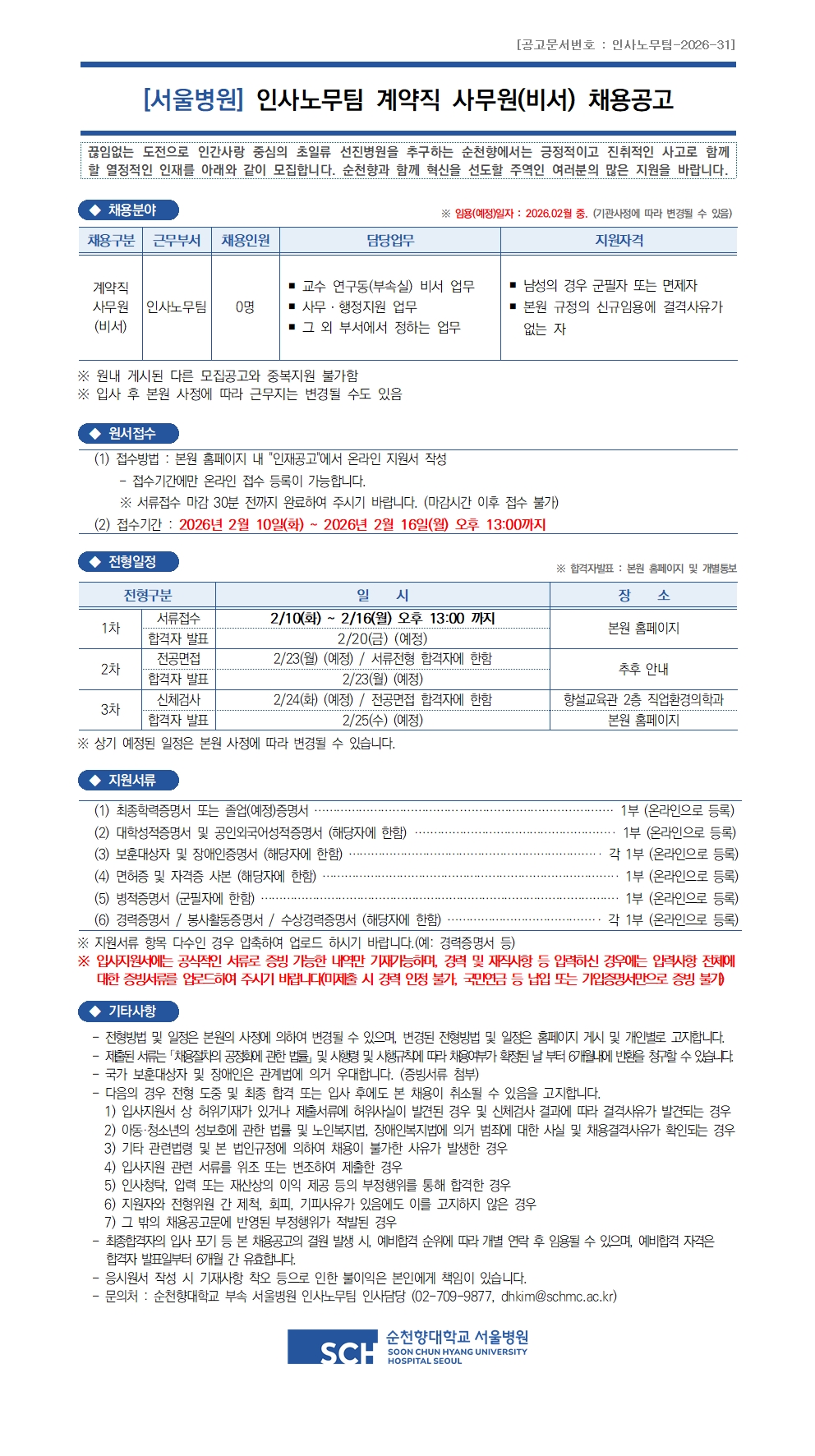Àλç³ë¹«ÆÀ °è¾àÁ÷ »ç¹«¿ø(ºñ¼­) ä¿ë°ø°í