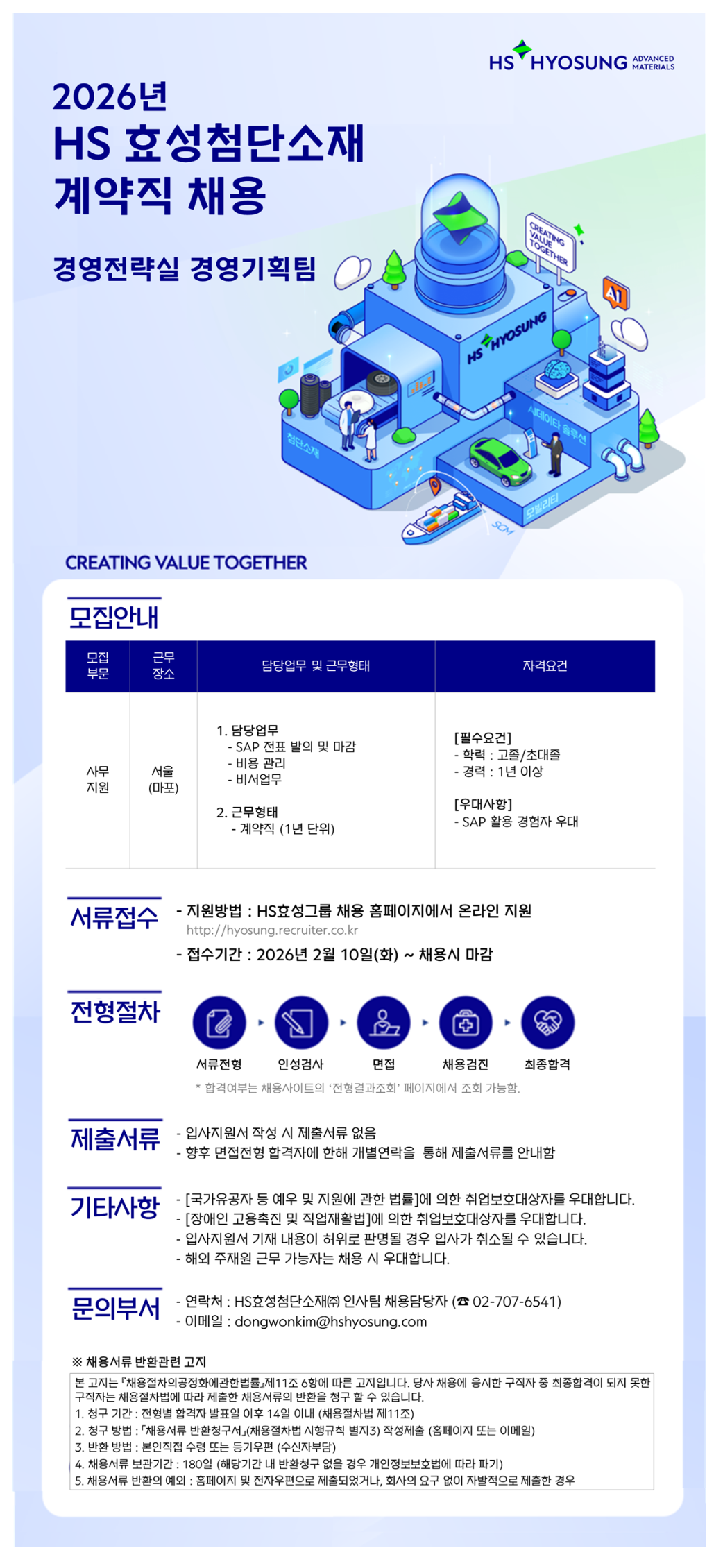 HSÈ¿¼ºÃ·´Ü¼ÒÀç¢ß °æ¿µÀü·«½Ç »ç¹«Áö¿ø °è¾àÁ÷ ä¿ë