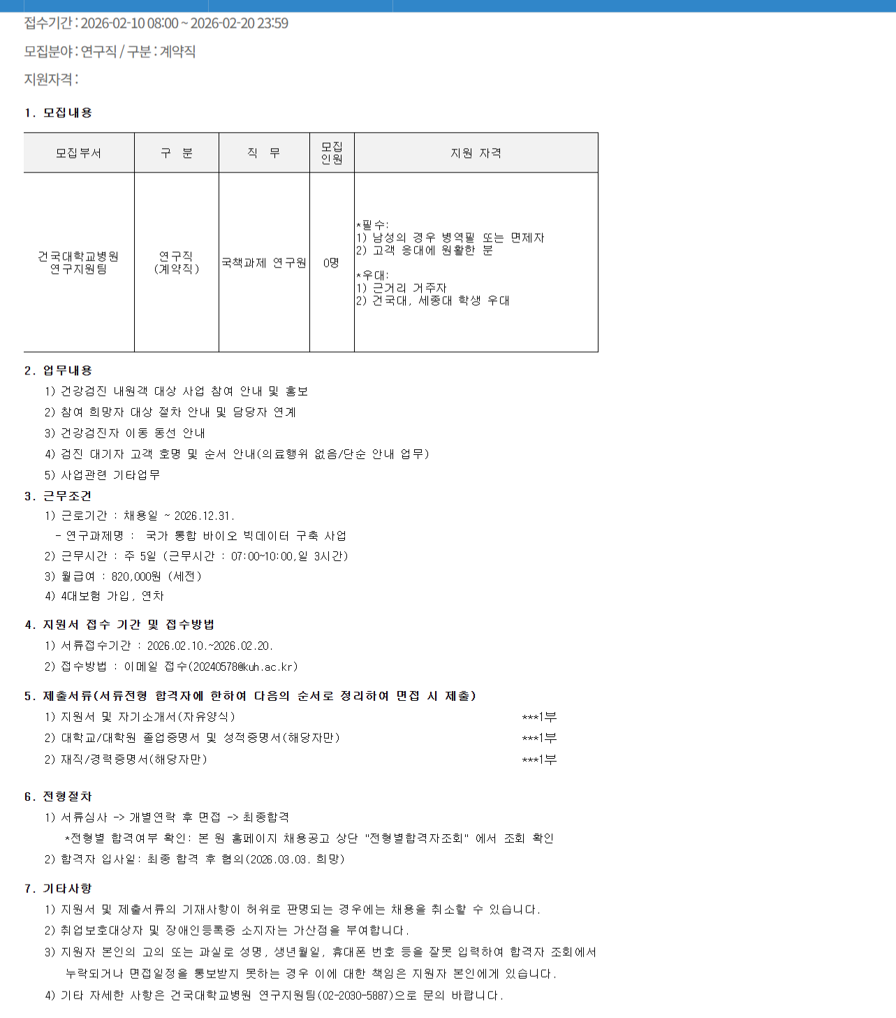 [¿¬±¸°è¾àÁ÷] <±¹°¡ ÅëÇÕ ¹ÙÀÌ¿À ºòµ¥ÀÌÅÍ ±¸Ãà»ç¾÷> ½Ã°£Á¦ ¿¬±¸¿ø ä¿ë(¾È³»)