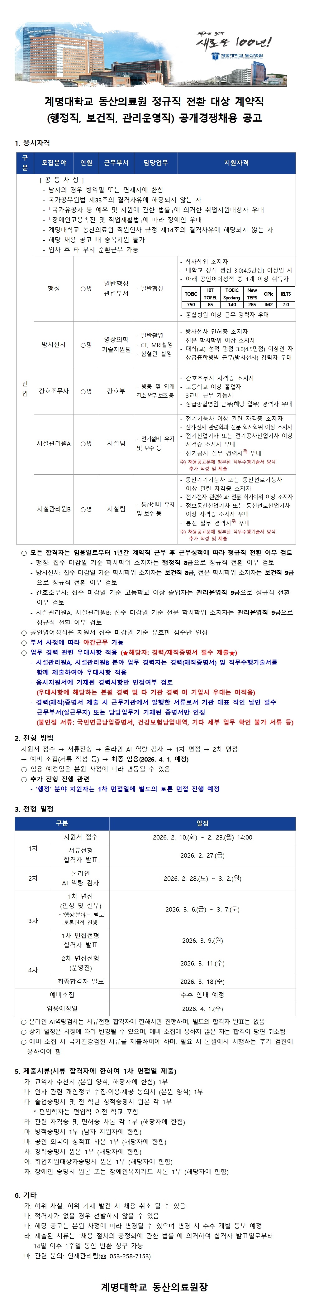 °è¸í´ëÇб³ µ¿»êÀÇ·á¿ø Á¤±ÔÁ÷ Àüȯ ´ë»ó °è¾àÁ÷(ÇàÁ¤Á÷, º¸°ÇÁ÷, °ü¸®¿î¿µÁ÷) °ø°³°æÀïä¿ë °ø°í