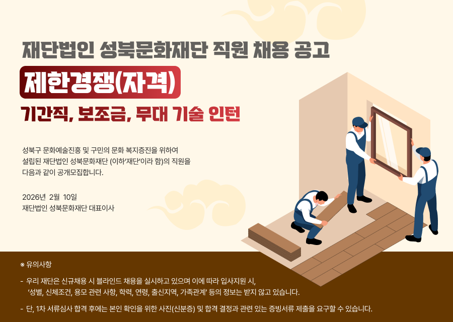 | ¿ø¼Á¢¼ö | 2026.2.13. 14:00 ~ 2026.2.22. 14:00 | Àç´Ü ¿Â¶óÀΠä¿ëÁ¢¼ö½Ã½ºÅÛ (recruit.incruit.com/sbculture) |