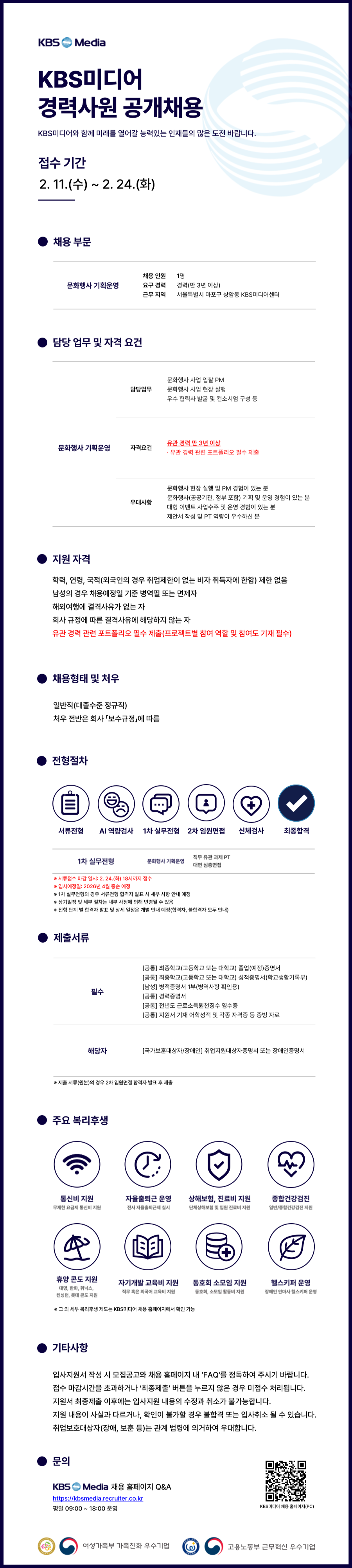 2026³â KBS¹Ìµð¾î °æ·Â»ç¿ø °ø°³Ã¤¿ë - ¹®ÈÇà»ç ±âȹ¿î¿µ