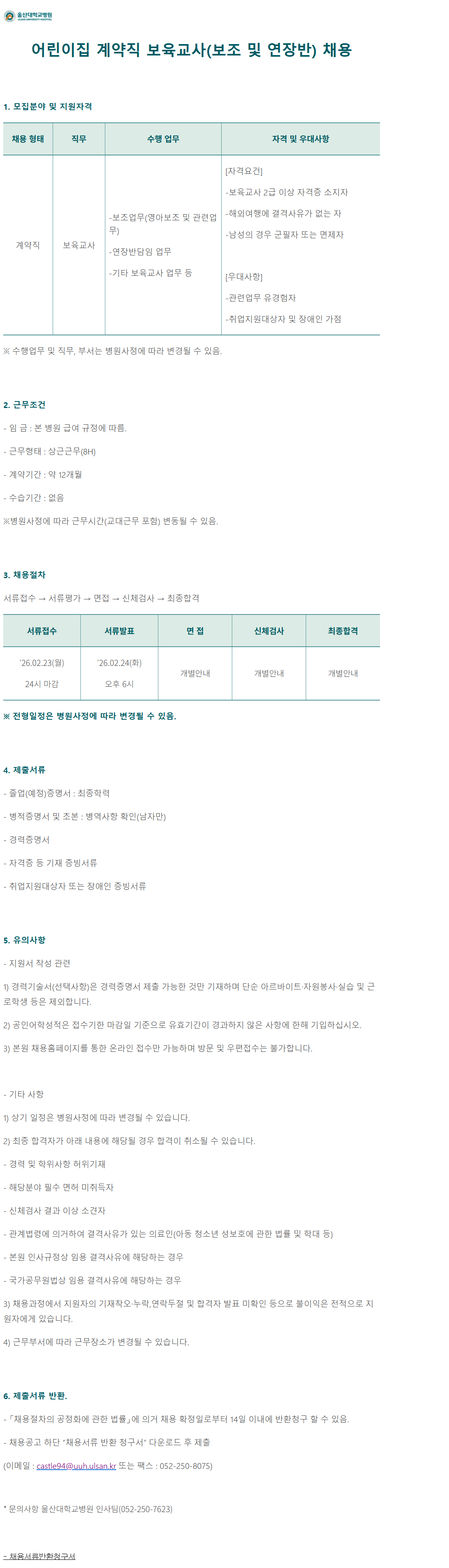 ¾î¸°ÀÌÁý °è¾àÁ÷ º¸À°±³»ç(º¸Á¶ ¹× ¿¬Àå¹Ý) ä¿ë
